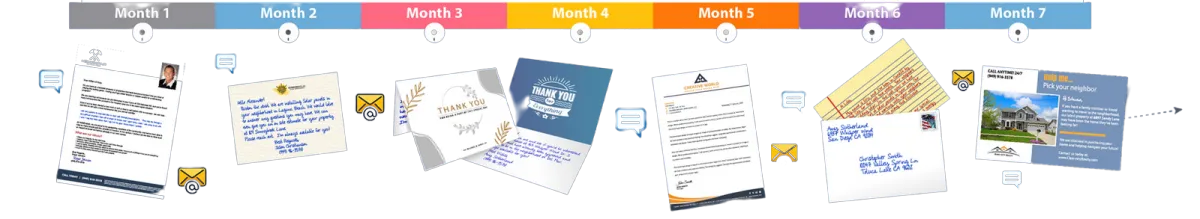 Using our proven physical marketing assets and direct mail marketing campaigns instantly boost your credibility. We help position to help offer solutions for any seller situation.
