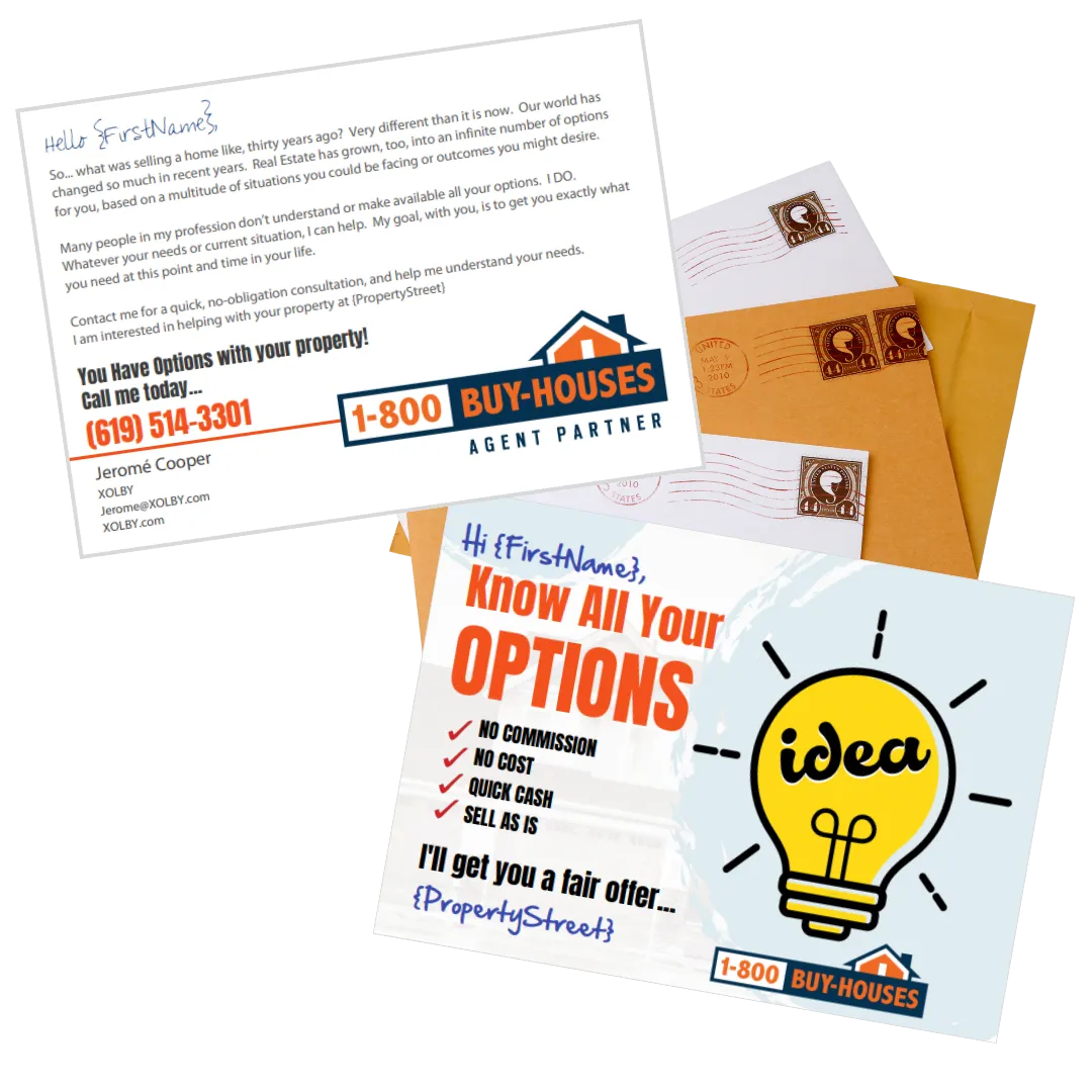 Using our proven physical marketing assets and direct mail marketing campaigns instantly boost your credibility. We help position to help offer solutions for any seller situation.